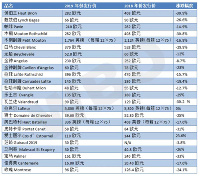 其次,此前幾年的期酒發(fā)行價呈上升趨勢,部分名莊酒連續(xù)幾年維持雙位數(shù)的漲幅。此次“降溫”,也是市場回歸理性的一種表現(xiàn)。事實上,WBO此前也報道過,波爾多名莊酒的熱度有所降低,部分名莊酒在終端市場的漲幅也趨于疲軟。