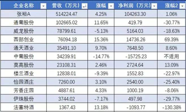 截止4月29日,國(guó)內(nèi)14家葡萄酒上市公司中有12家發(fā)布了2018年年報(bào)。去年12家企業(yè)整體營(yíng)收89.47億元,凈利潤(rùn)17.37億元,在中糧長(zhǎng)城和王朝缺席的情況下,2018年葡萄酒行業(yè)交出了一份“意料之中”的成績(jī)單。
