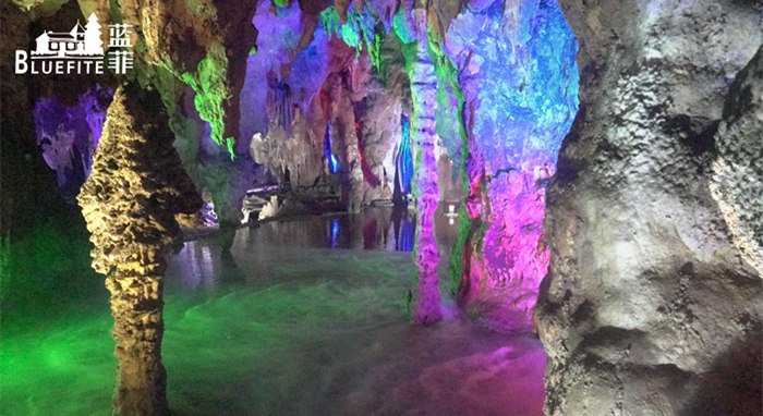 拓展之旅的第一站,就是跟隨導游參觀當?shù)匾云湫?、奇、壯而著稱的風景名勝——寶晶宮溶洞。溶洞共分四層,共有72洞,洞洞相通;藍菲團隊結伴而行,共同觀賞大自然的鬼斧神工!燈光映襯下的寶晶宮溶洞熠熠生輝,洞內高大寬闊,雄偉壯觀,石筍、石柱林立,石花、石幔千姿百態(tài),石鐘乳玲瓏剔透,絢麗多姿,令藍菲伙伴們流連忘返,嘆為觀止,仿佛踏進了一個仙境。